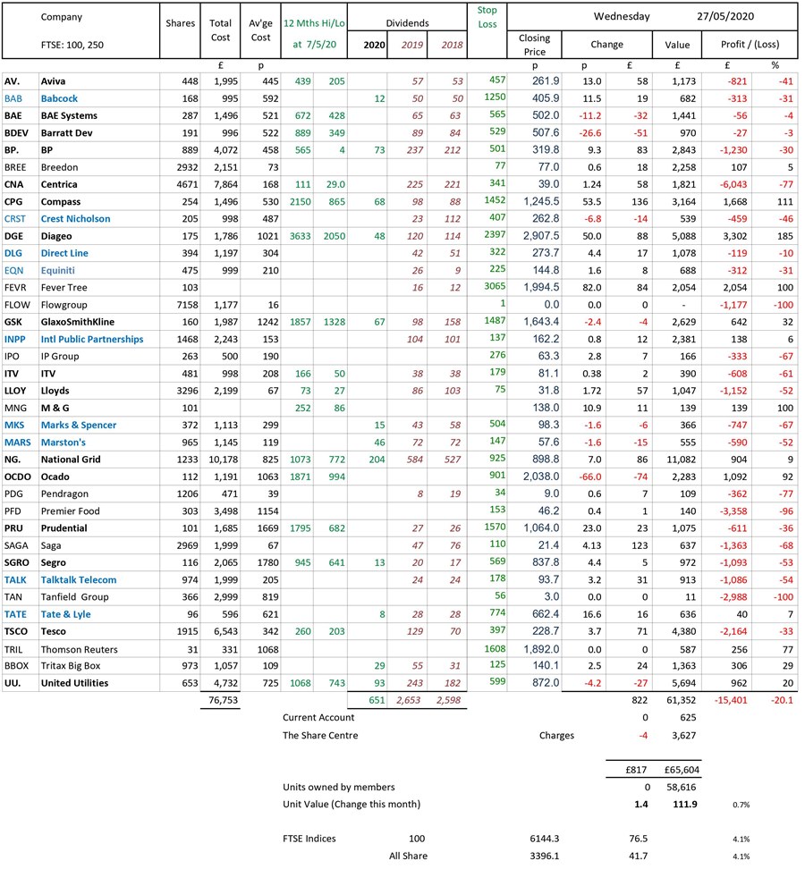 as at close of business Wednesday 27 May 2020