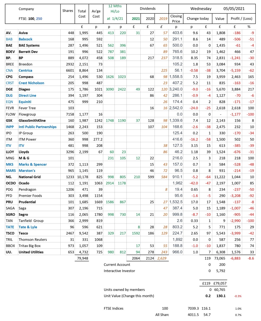 as at close of business Wednesday 5 May 2021