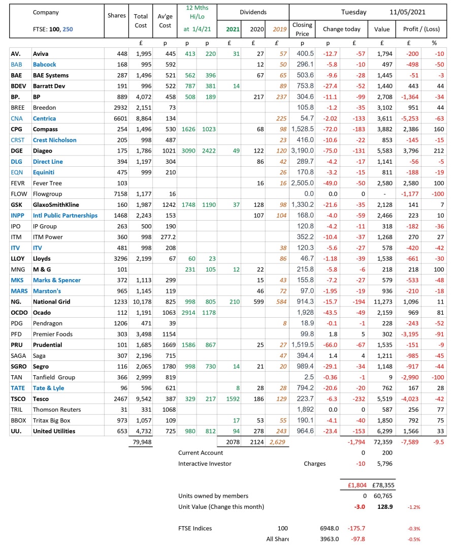 as at close of business Tuesday 11 May 2021