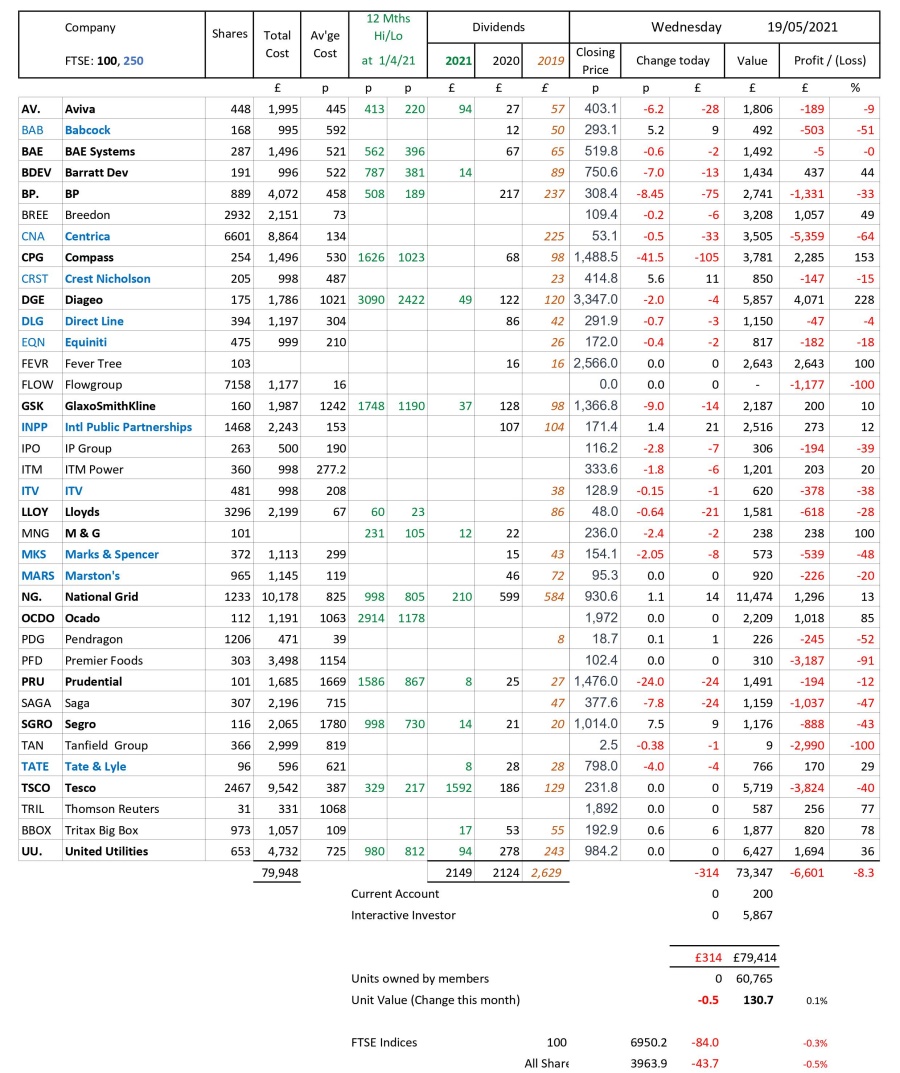 as at close of business Wednesday 19 May 2021