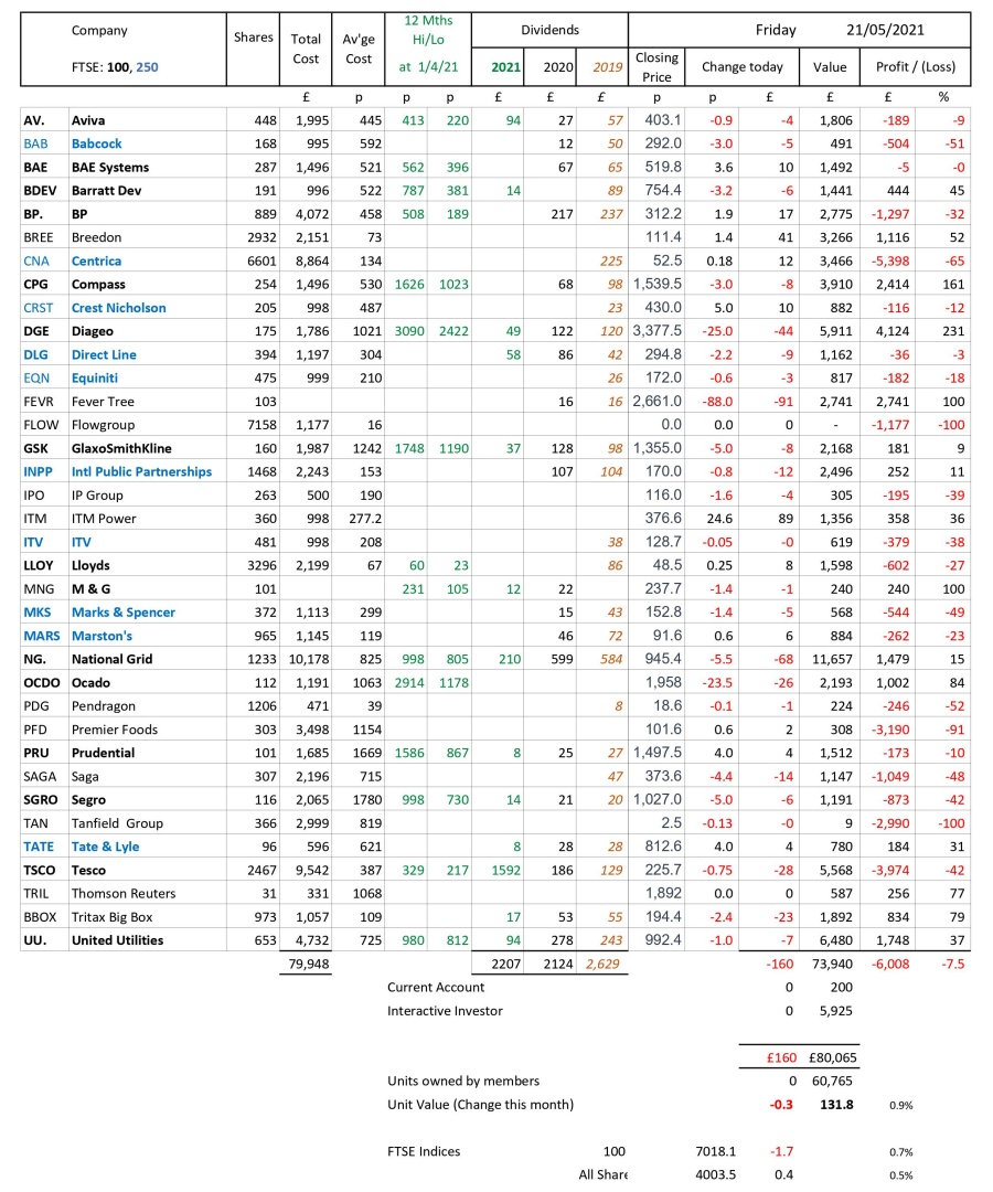 as at close of business Friday 21 May 2021