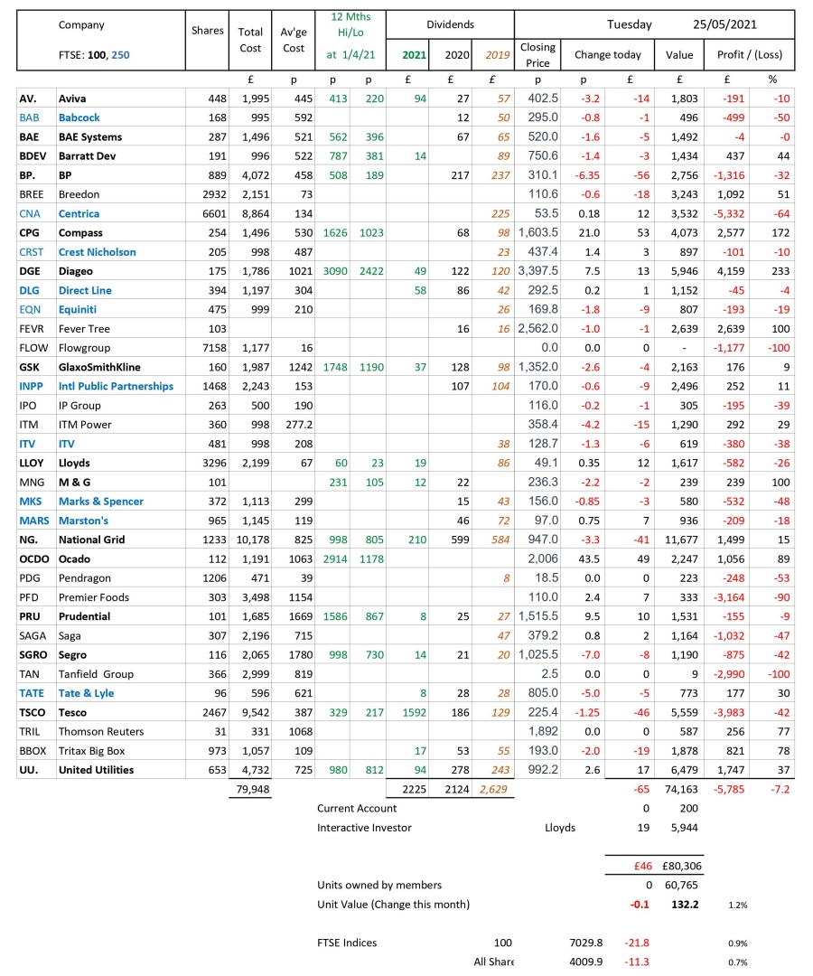 as at close of business Tuesday 25 May 2021