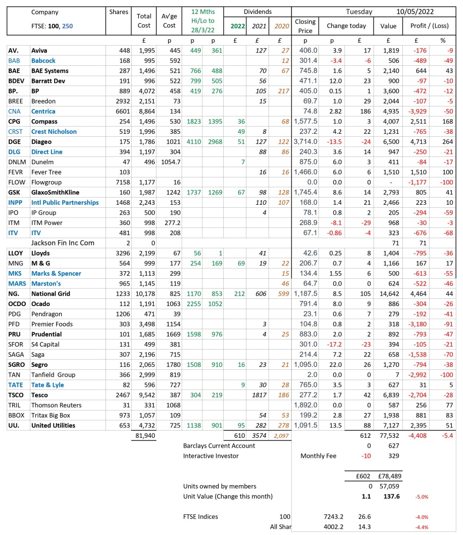 as at close of business Tuesday 10 May 2022