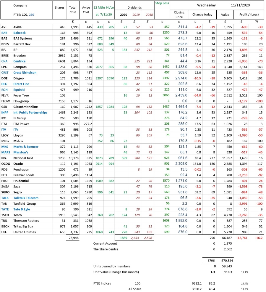 as at close of business Wednesday 11 November 2020