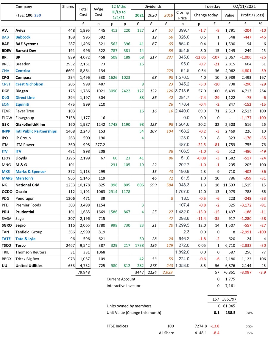 as at close of business Tuesday 2 November 2021