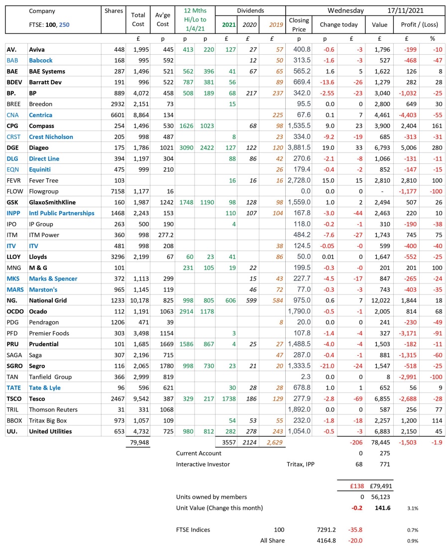as at close of business Wednesday 17 November 2021
