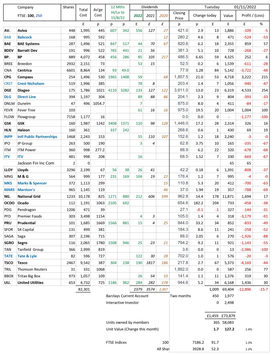 as at close of business Tuesday 1 November 2022