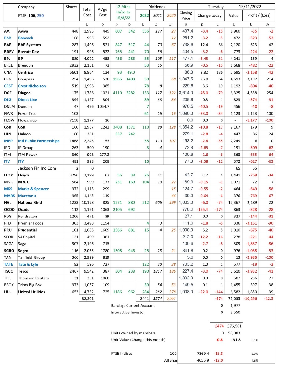 as at close of business Tuesday 15 November 2022
