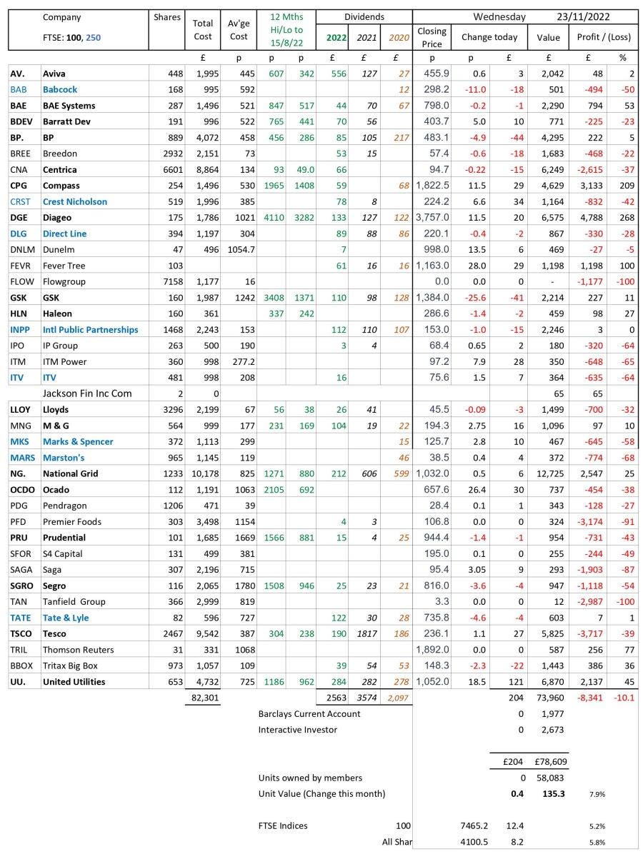as at close of business Wednesday 23 November 2022