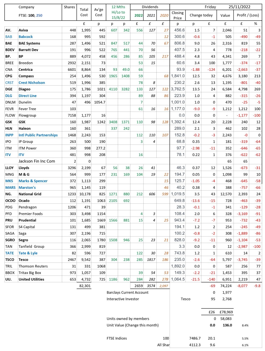 as at close of business Friday 25 November 2022