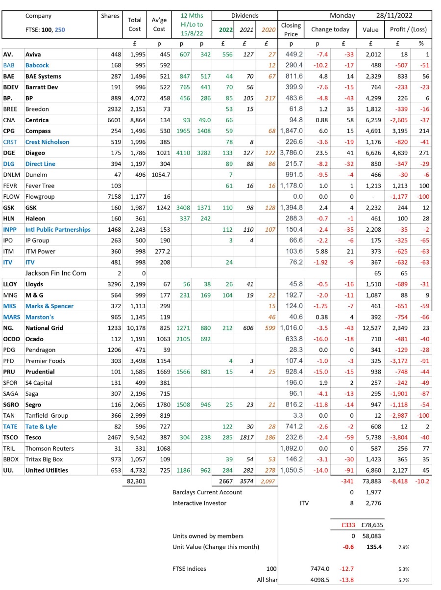 as at close of business Monday 28 November 2022