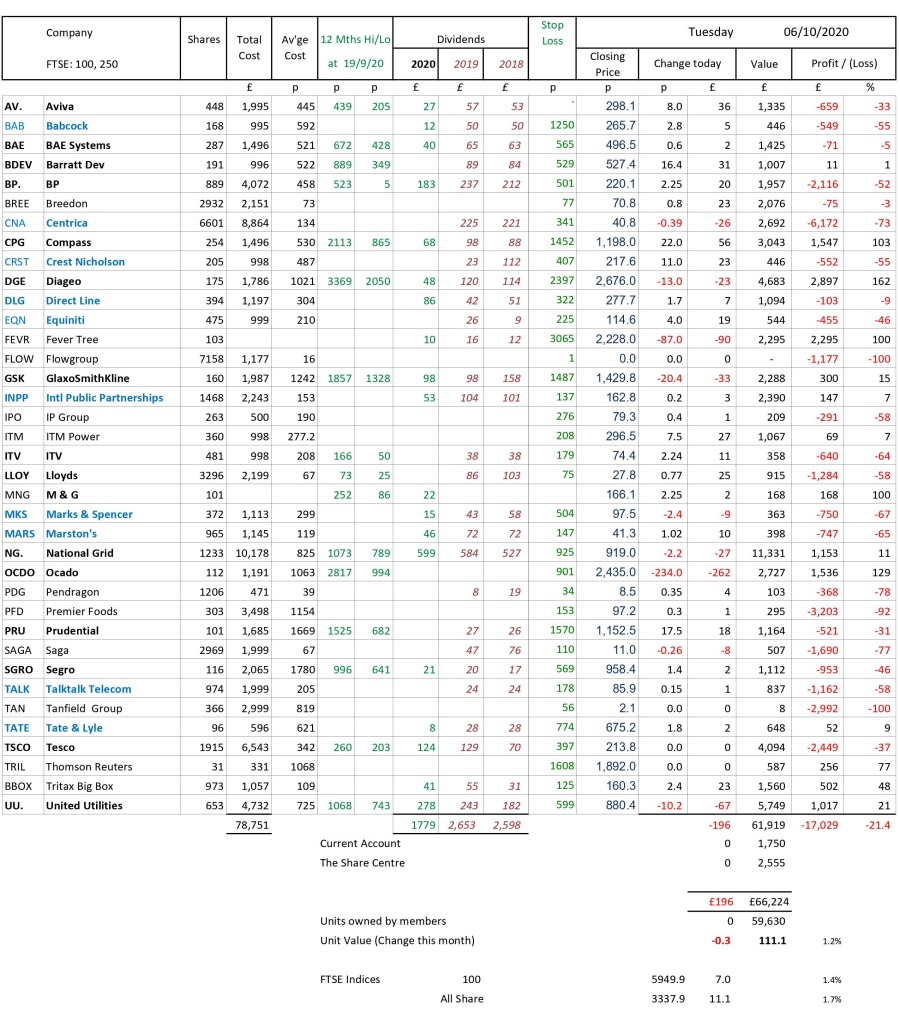 as at close of business Tuesday 6 October 2020