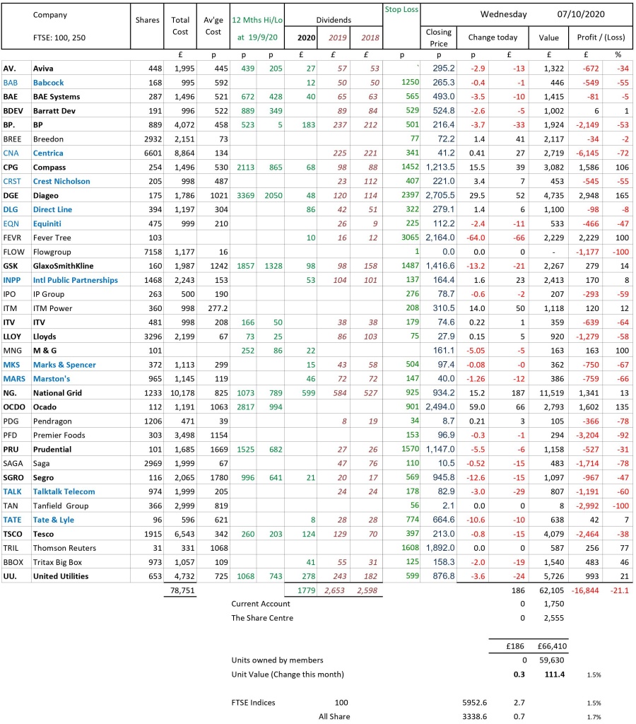 as at close of business Wednesday 7 October 2020