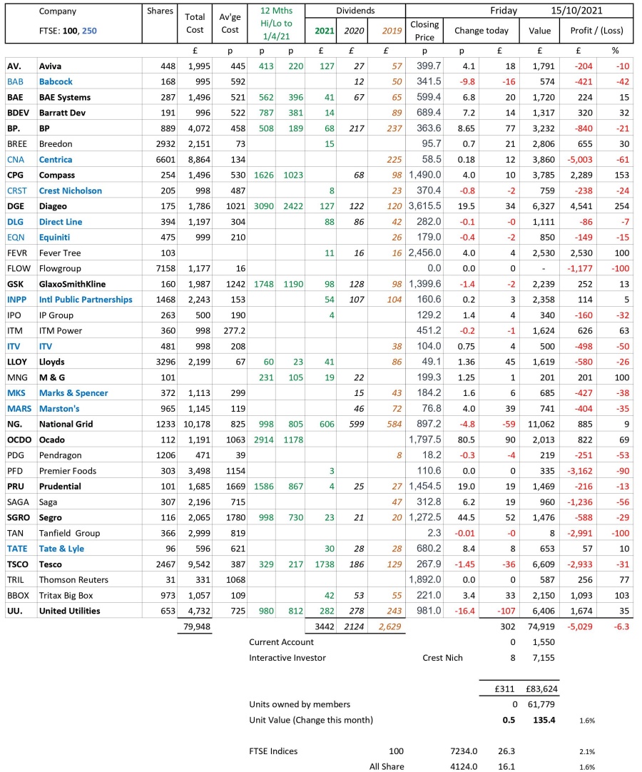 as at close of business Friday 15 October 2021
