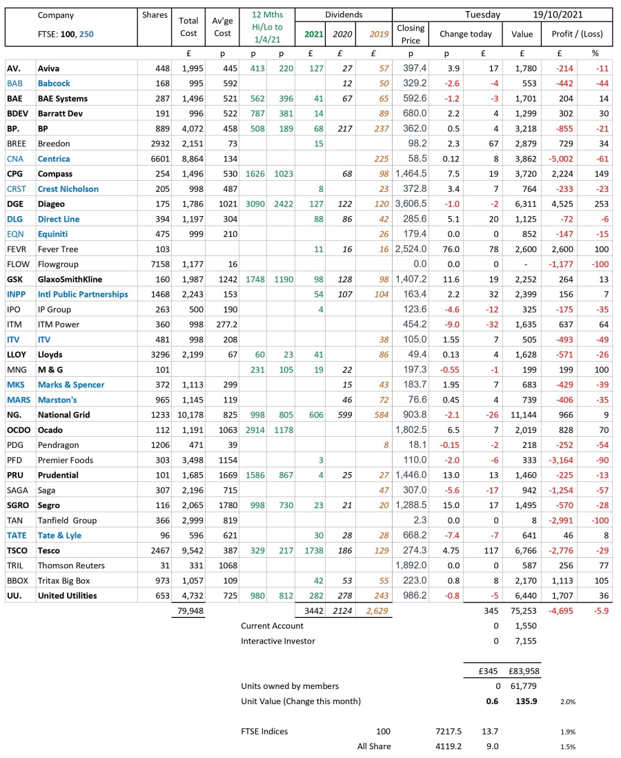 as at close of business Tuesday 19 October 2021