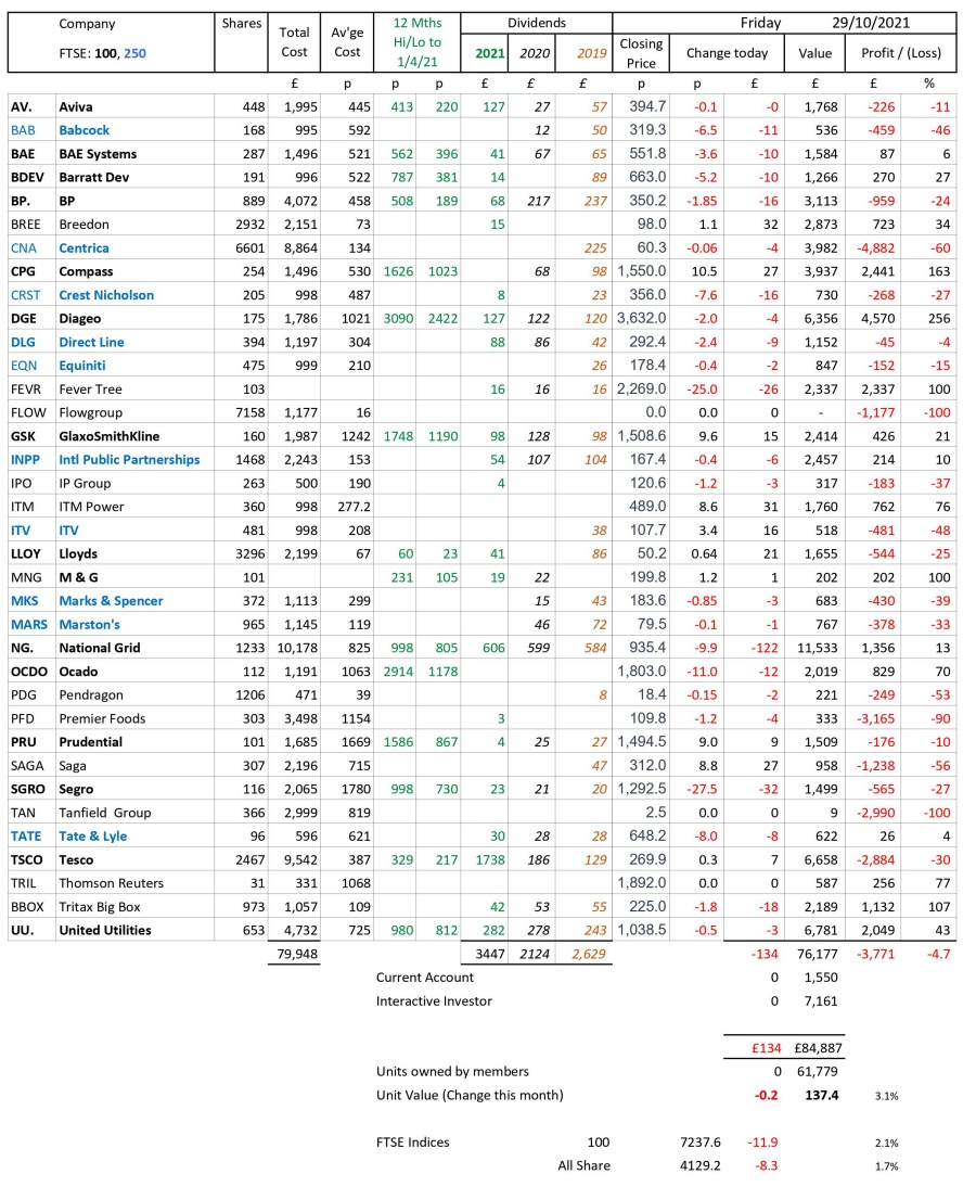 as at close of business Friday 29 October 2021