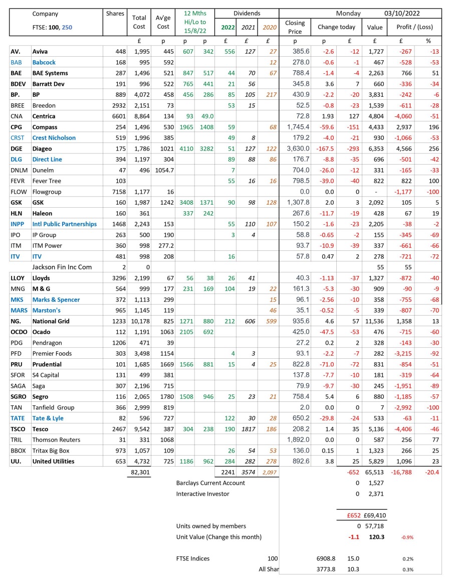 as at close of business Monday 3 October 2022