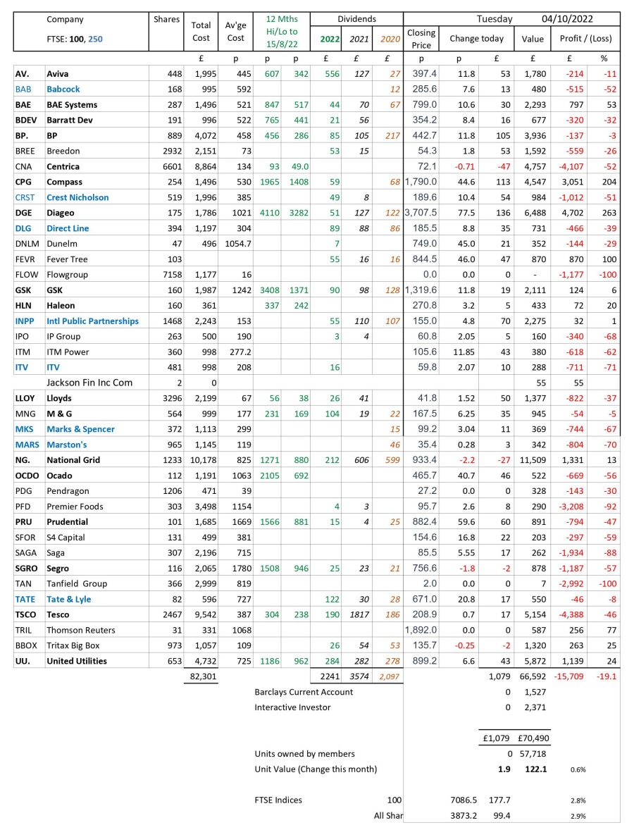 as at close of business Tuesday 4 October 2022