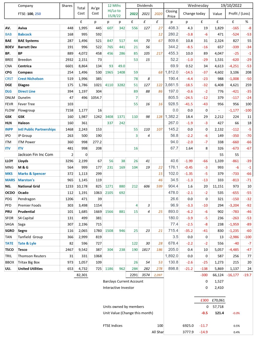 as at close of business Wednesday 19 October 2022