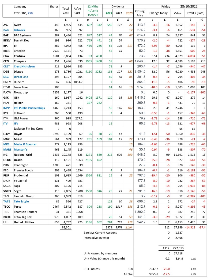 as at close of business Friday 28 October 2022