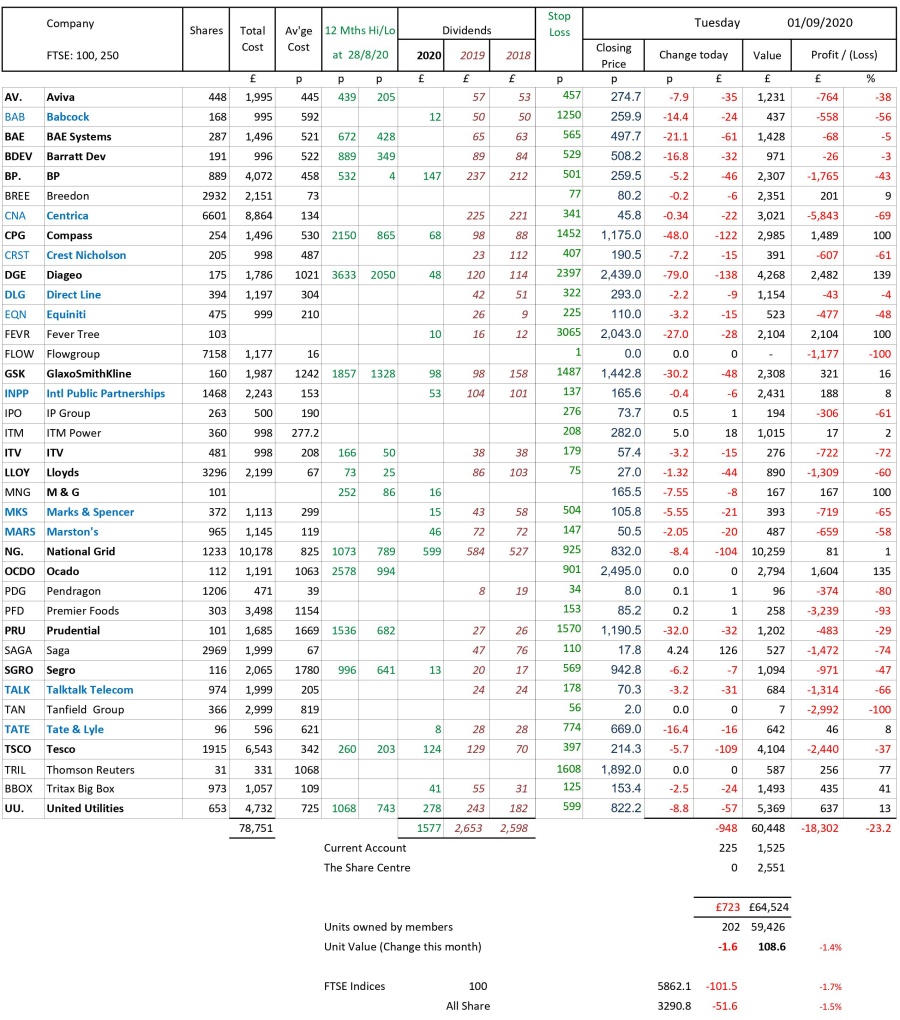 as at close of business Tuesday 1 September 2020