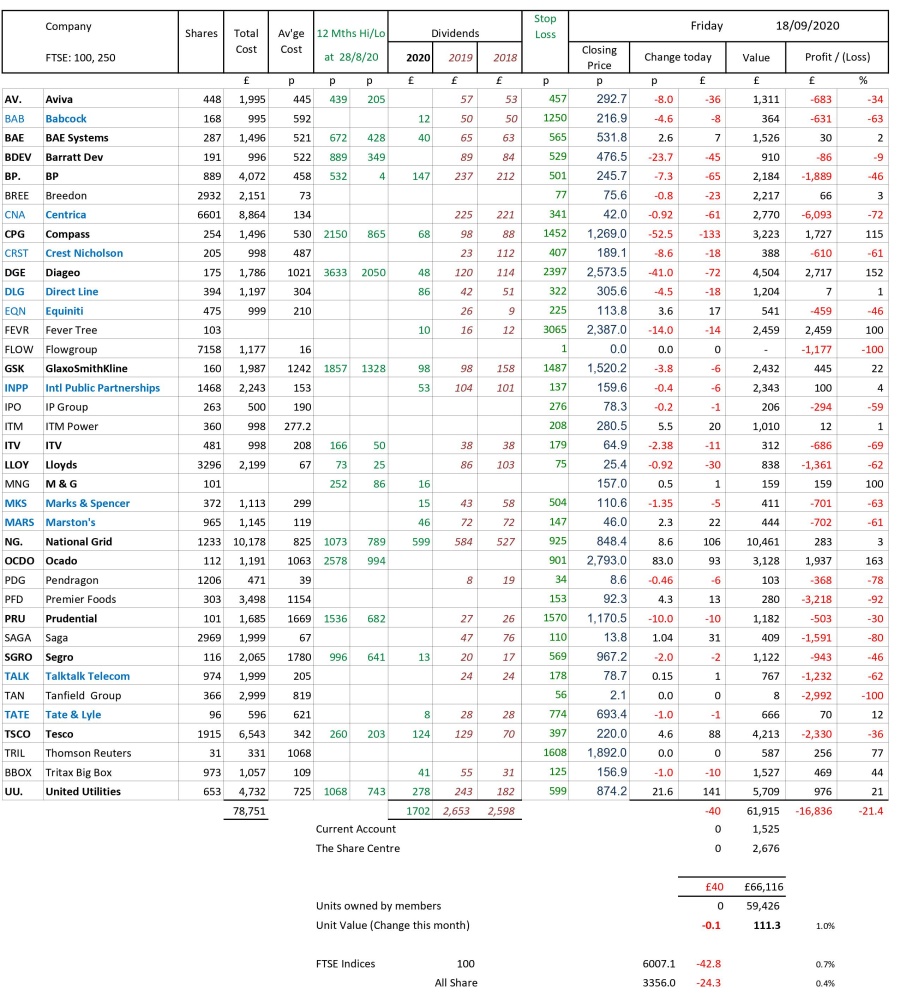 as at close of business Friday 18 September 2020