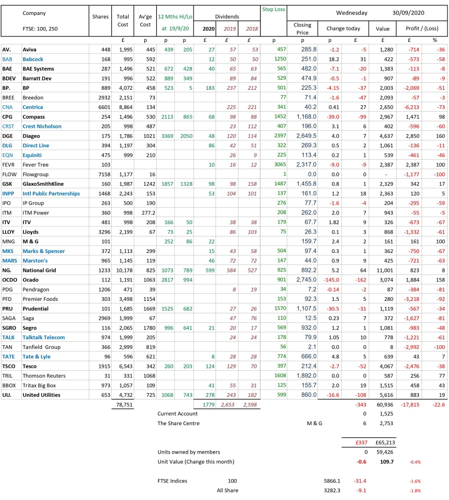 as at close of business Wednesday 30 September 2020