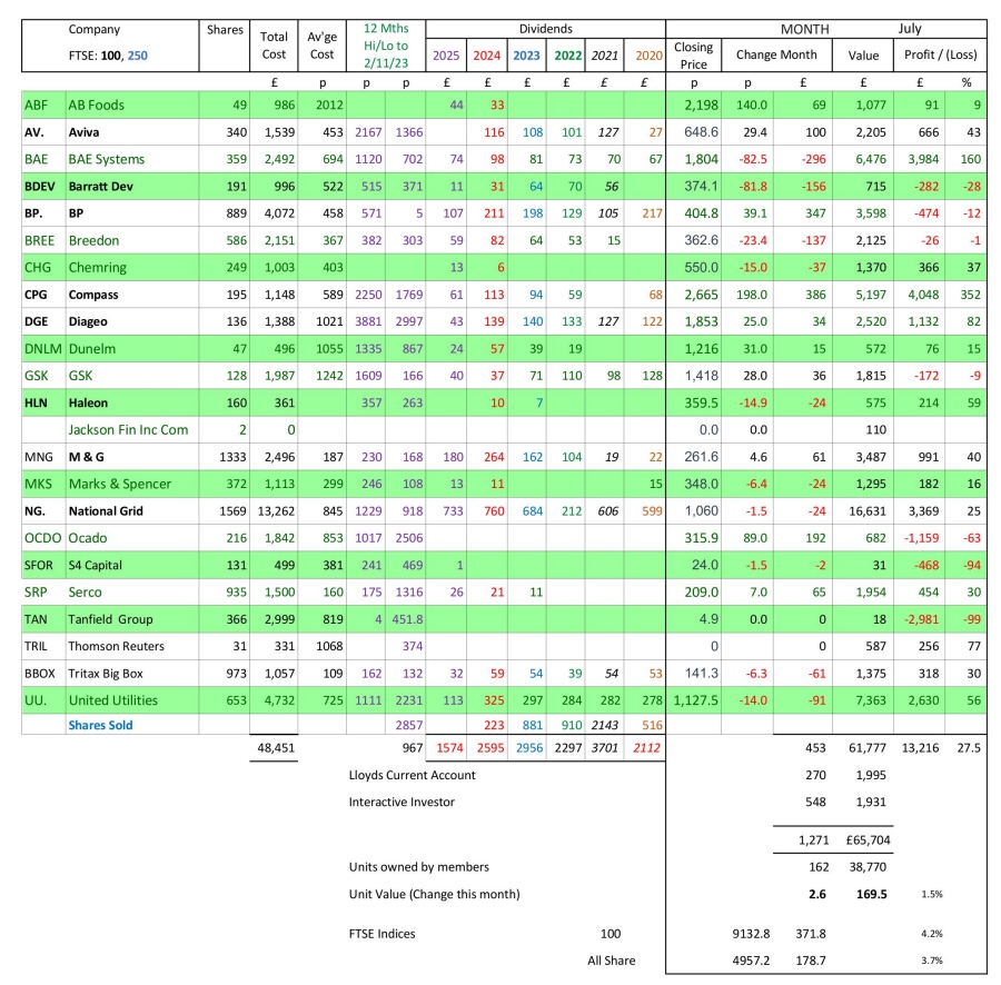 as at close of business Thursday 31 July 2025